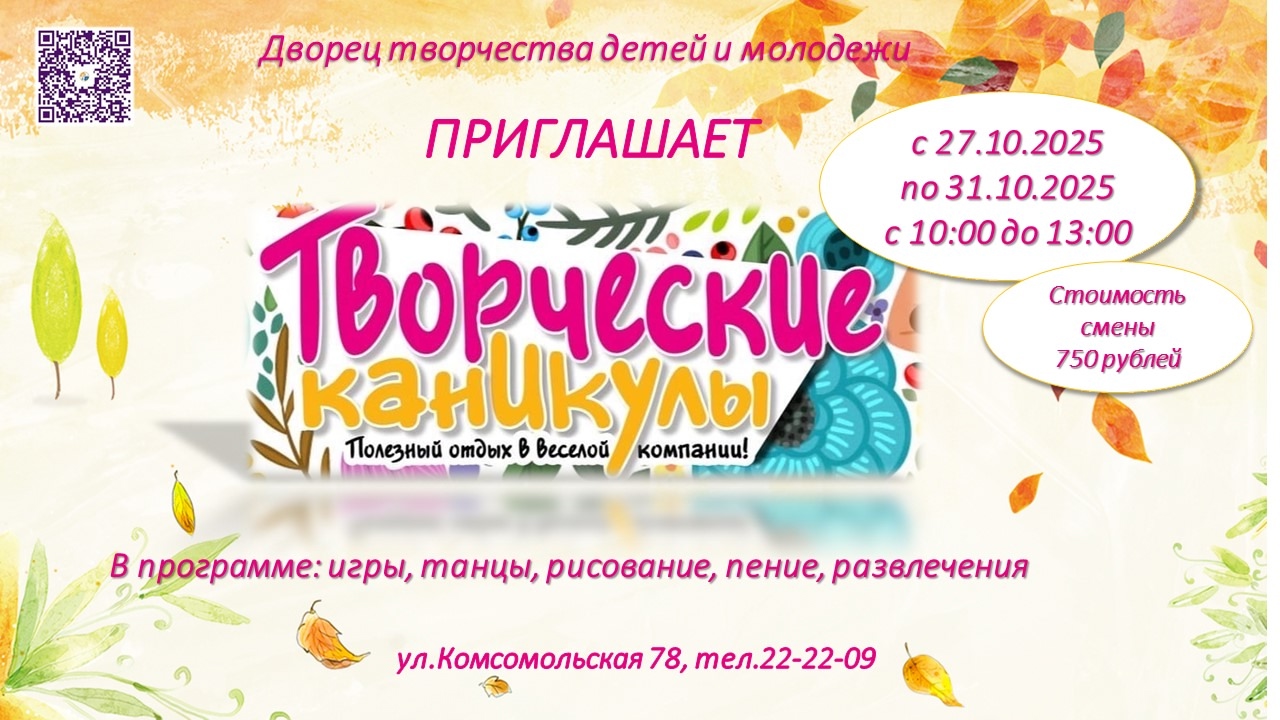 Приглашаем весело провести осенние каникулы вместе с нами! Мы подготовили интереснейшую программу специально для Вас, полную весёлых игр, зажигательных танцев, увлекательного рисования, задорного пения и множества развлечений!